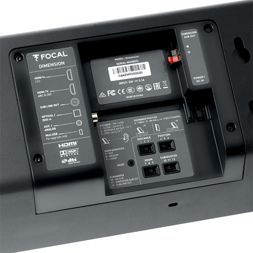 - Dimension soundbar: on the connection panel.